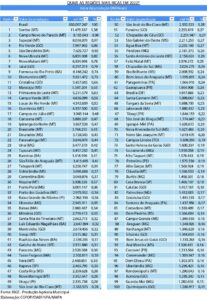 No topo da lista dos 100 mais ricos, selecionados de uma relação de 5.563 municípios, encontram-se Sorriso, Campo Novo do Parecis, Sapezal, Rio Verde (GO) e São Desidério (BA), com participação expressiva na produção brasileira de algodão, milho e soja.