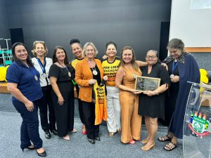 Ainda nesta semana, na segunda-feira (4), a homenagem aconteceu em Sinop, durante o XIV ENCONTRO NACIONAL DE EDUCAÇÃO – ENAED na UNEMAT quando “Coletivo Negras Mato-grossenses” prestou homenagens a AJEB-MT pelo trabalho que a entidade faz de incentivo e apoio as escritoras e também na divulgação das obras literárias produzidas. A homenagem foi entregue pela presidente do Coletivo Claudia Miranda.
