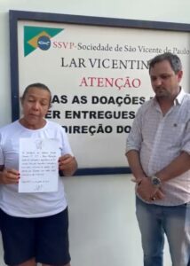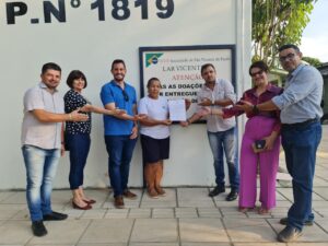 AMIGOS DO BEM : Representantes da Organização do Arraiá dos Vizinhos faz entrega de doação ao Lar Vicentino