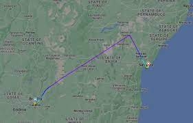 O site FlightAware mostra que o avião partiu do Aeroporto de Brasília às 9h15, mas precisou pousar no Aeroporto de Salvador às 11h11.