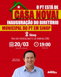 Com a mudança para a nova sede, o Diretório Municipal do Partido dos Trabalhadores em Sinop MT mostra seu compromisso e sua força política na cidade. A inauguração do novo espaço na rua das violetas, no bairro Jardim das Violetas, 2201, é um marco para o partido e para todos aqueles que acreditam em um projeto de transformação social.