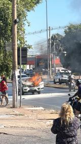 Um veículo Kwid branco pegou fogo na manhã desta terça-feira (12), por volta das 9h, na Avenida...