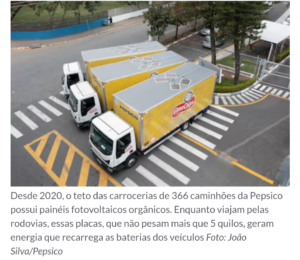 Hoje, os principais compradores dessas células são empresas. É o caso da Pepsico, que adquire o material da Sunew. Desde 2020, o teto das carrocerias de 366 caminhões da empresa possui painéis fotovoltaicos orgânicos. Enquanto viajam pelas rodovias, essas placas, que não pesam mais que 5 quilos, geram energia que recarrega as baterias dos veículos.