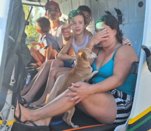 Houve também resgate de um homem e um cachorro encontrados em cima de um colchão inflável à deriva. O homem tentava ir para casa caminhando, mesmo com a água na altura do peito. Ele viu um colchão inflável e conseguiu subir, contudo, no caminho encontrou o cachorro que estava quase se afogando e parou para ajudar. Ao ser resgatado, os integrantes do Ciopaer observaram que o homem já estava sem força, debilitado e com escoriações pelo corpo.