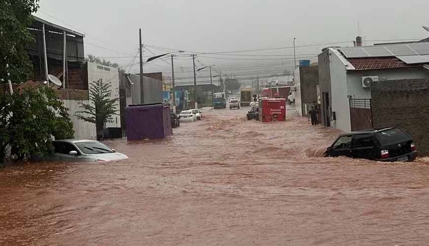 Uma tempestade intensa atingiu Pontes e Lacerda, município localizado a 483 km de Cuiabá, nesta terça-feira (5), causando alagamentos generalizados e transtornos no trânsito. A Prefeitura Municipal informou que foram registrados mais de 100 milímetros de chuva em menos de 40 minutos.