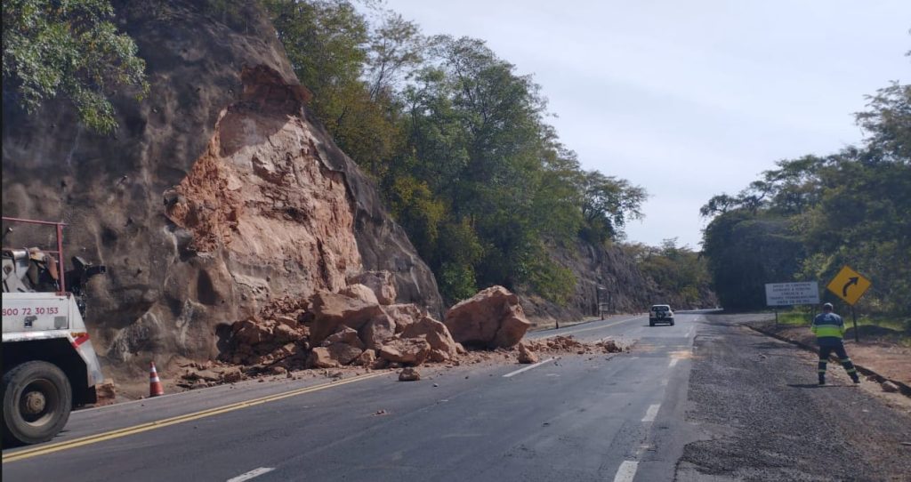 Deslizamento de pedras interdita pista na BR-153 em Marília