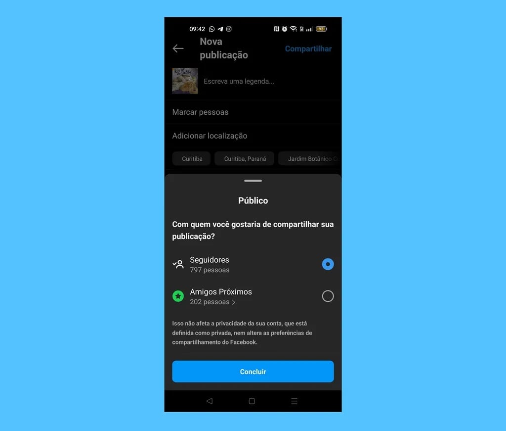 • Finalizar a publicação tocando em “Compartilhar”.
