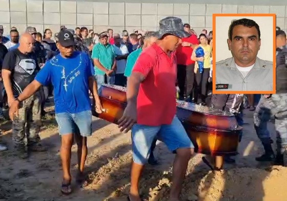 Quando o corpo chegou ao cemitério, Djalma foi homenageado pelos colegas da PM com os tradicionais tiros de salva fúnebre. Em outras imagens, é possível ouvir uma mulher chorando e dizendo para “trazer ele de volta” enquanto o caixão é colocado no túmulo.