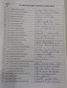 Lista de presença da Sala 05 encaminhada pela Prefeitura de Matupá