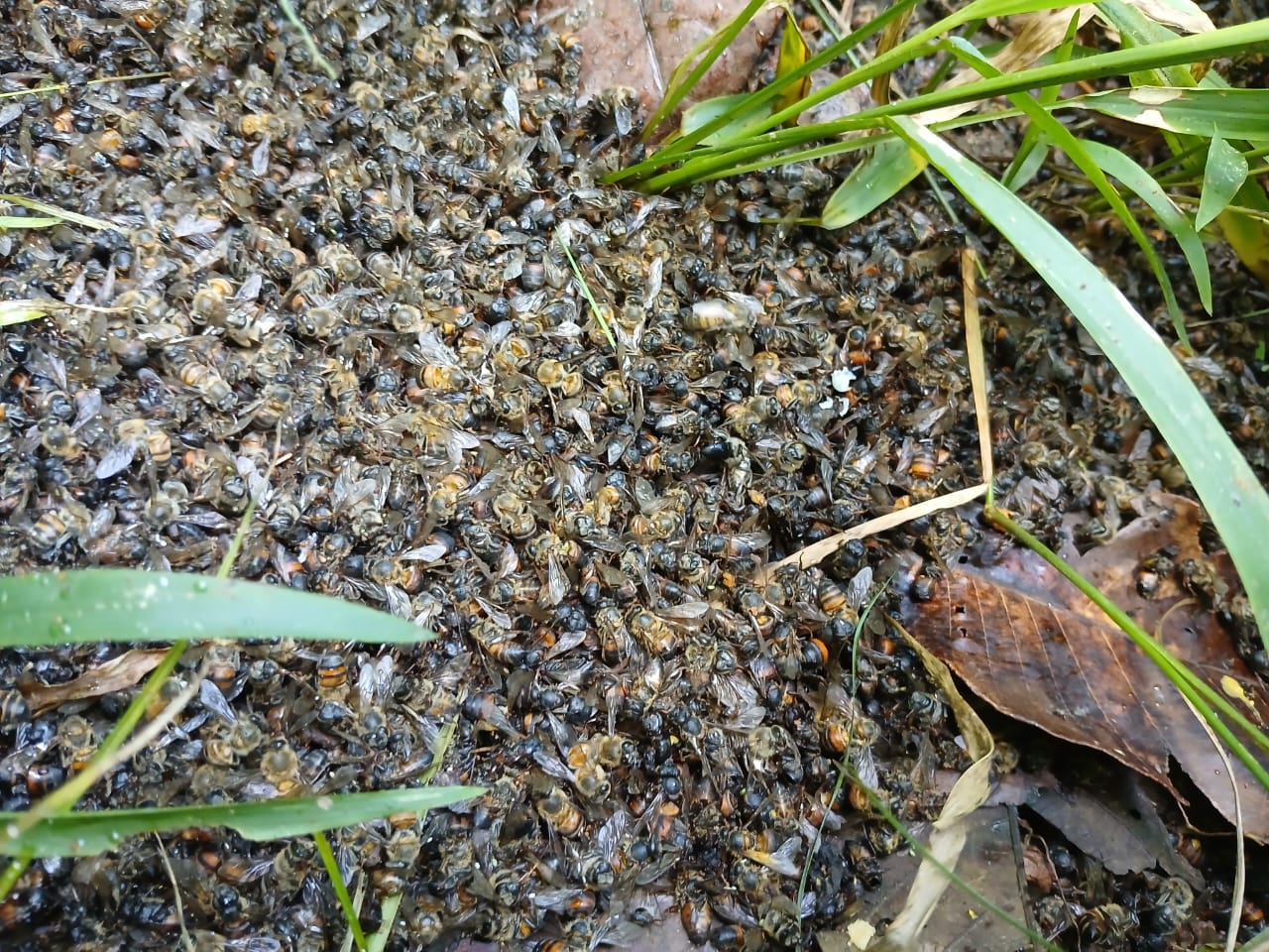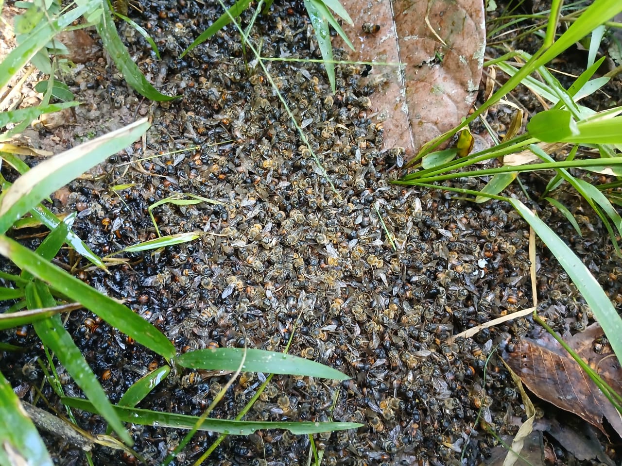 Imagens e vídeos registrados no local mostram colmeias com baixa atividade e grande quantidade de abelhas mortas no solo, cenário que indica perdas significativas para produtores. Em alguns casos, há suspeita de comprometimento total dos enxames.