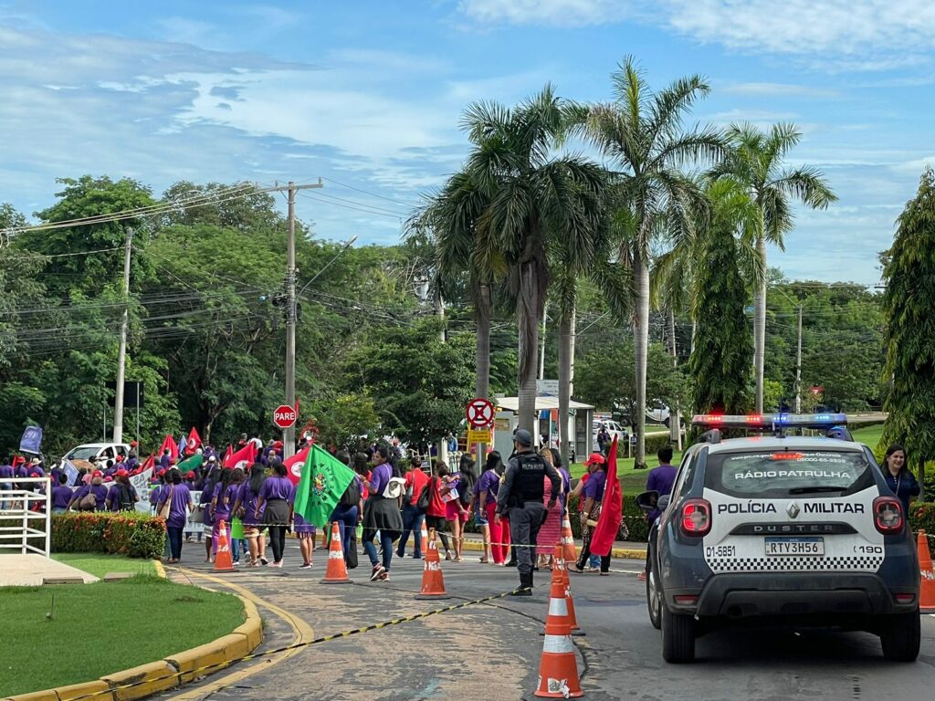 Com o lema: LUTAREMOS! POR NOSSOS CORPOS E TERRITORIOS, NENHUMA A MENOS! As mulheres pautam a inconstitucionalidade lei Nº 12.430/2024 de autoria do Deputado Claudio Ferreira que relativiza os direitos sociais historicamente conquistadas pela classe trabalhadora, amplia a potencialidade dos conflitos e violência no campo e não resolve o problema da classe trabalhadora precarizada que necessita de políticas assistenciais.