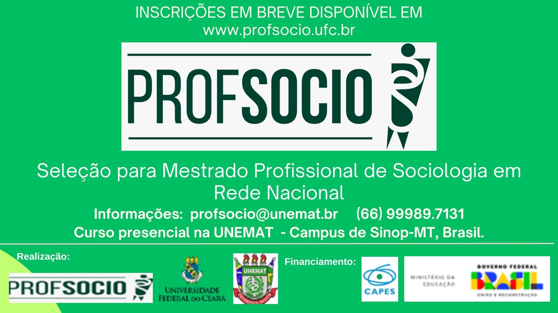 O Mestrado Profissional de Sociologia em Rede Nacional (PROFSOCIO), é oferecido gratuitamente, ao nível de pós-graduação stricto sensu, reconhecido pela Coordenação de Aperfeiçoamento de Pessoal de Nível Superior (CAPES) do Ministério da Educação (MEC), e coordenado em Rede Nacional pela Universidade Federal do Ceará (UFC).