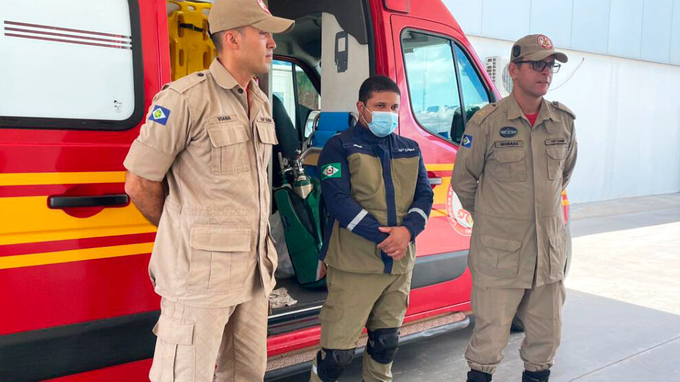 O Corpo de Bombeiros foi acionado após a mulher dar à luz a um menino, durante o...