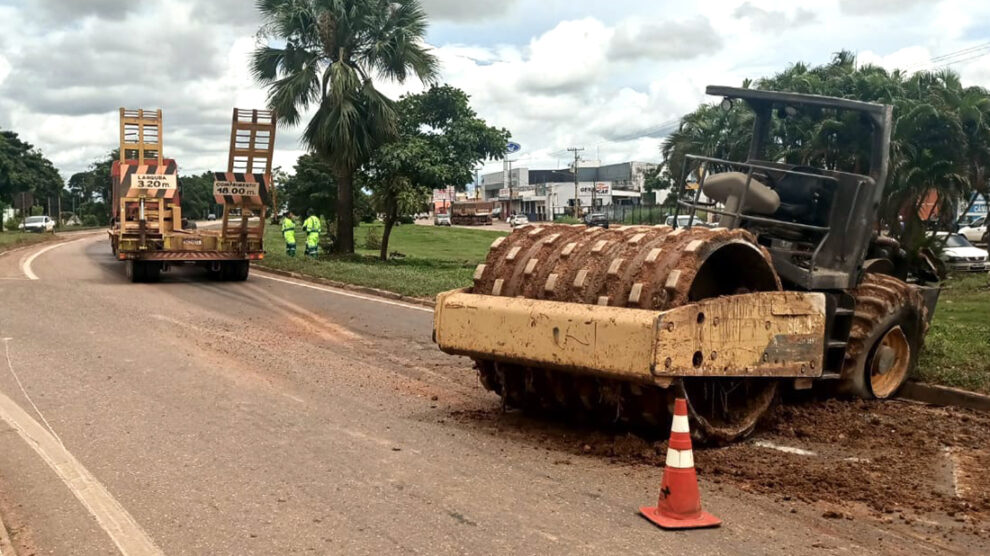 O acidente envolvendo um caminhão prancha e um rolo compactador foi, no final da manhã, na BR-163...