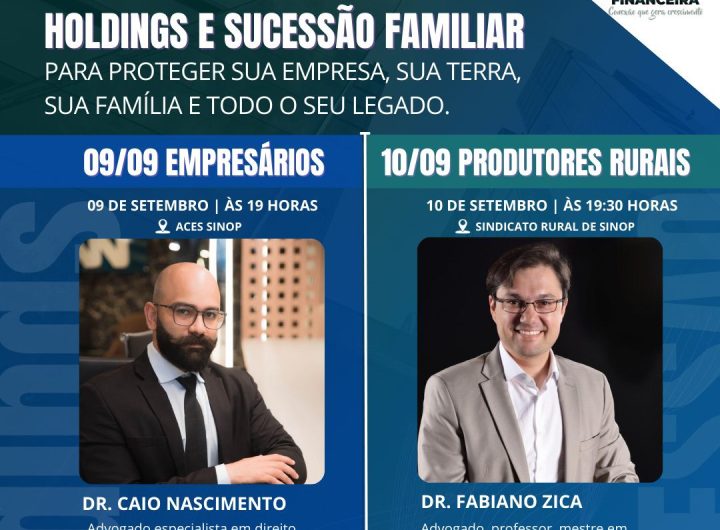 REFORMA TRIBUTÁRIA E COMO PROTEGER SEU PATRIMÔNIO: Sinop e Santa Carmem recebem evento gratuito sobre sucessão familiar e proteção patrimonial