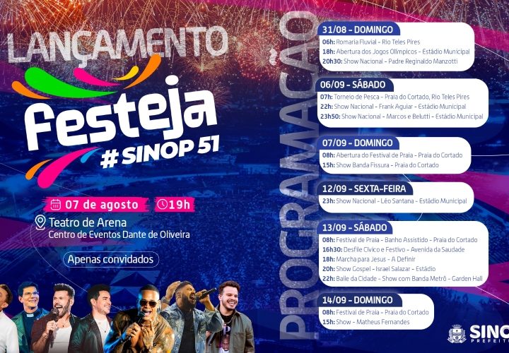 Festeja Sinop : Prefeito lança amanhã (07) calendário de festividade dos 51 anos
