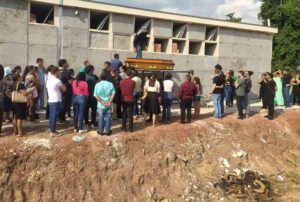 Uma vala de escoamento construída em frente aos túmulos verticais no cemitério de Sinop causa desafios para as cerimônias de sepultamento.