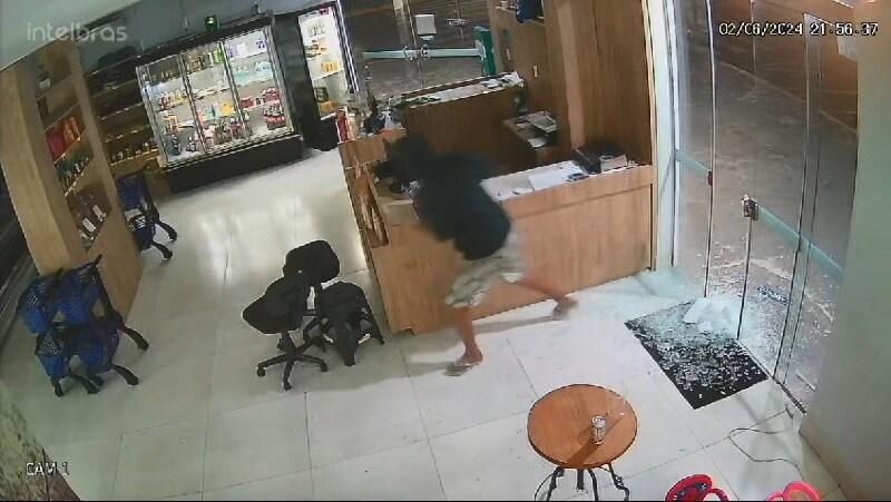 Câmeras de segurança de uma peixaria em Sinop flagraram o momento em que um criminoso quebrou o vidro da porta na tentativa de roubar o estabelecimento. O incidente ocorreu na noite de domingo (2), na Rua das Castanheiras.