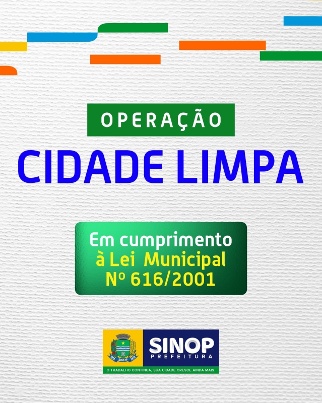 As ações são pautadas e amparadas pela Lei nº 616, de 11 de janeiro de 2001, que dispõe sobre o ordenamento da publicidade no espaço urbano de Sinop, com o objetivo de contribuir para a preservação e melhoria da paisagem urbana, respeitando o interesse coletivo e as necessidades sociais de conforto ambiental.