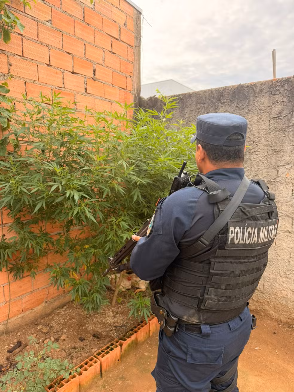 Durante a abordagem do indivíduo, os policiais localizaram uma plantação de maconha no quintal da residência. Diante do achado, a mulher, de 24 anos, também recebeu voz de prisão.