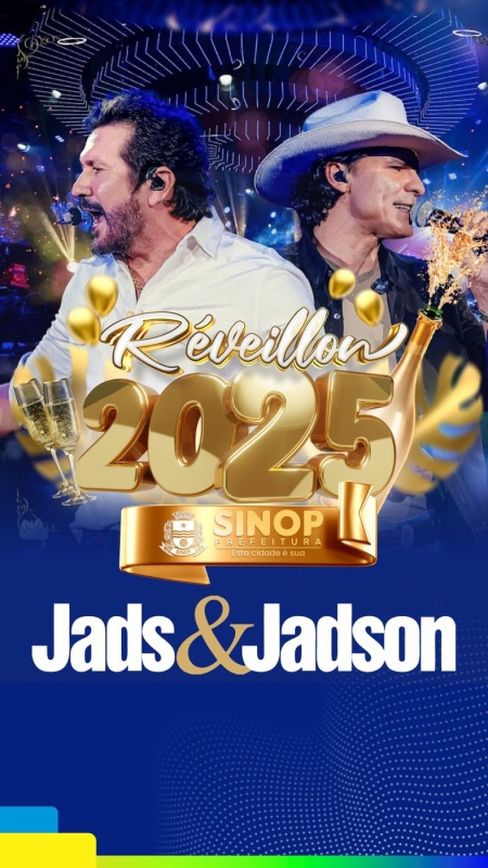 A prefeitura de Sinop divulgou a programação completa para o réveillon no estádio Gigante do Norte, que ocorrerá na próxima terça-feira (31). A principal atração da noite será a dupla sertaneja Jads e Jadson. Antes do show principal, o público poderá curtir apresentações de artistas locais, incluindo João Neto e Boiadeiro, Dam Marabá, Confederados 163 e Diogo e Alexandro.