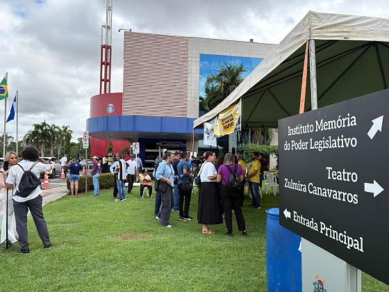Servidores do Poder Judiciário de Mato Grosso montaram um “acampamento” em frente à Assembleia Legislativa, nesta quarta-feira (21), para protestar por um aumento salarial de 6,8% e ajustes no plano de carreiras. A mobilização ocorre após a suspensão de uma greve que estava prevista para ter início hoje, devido a uma decisão do Tribunal de Justiça de Mato Grosso (TJMT).