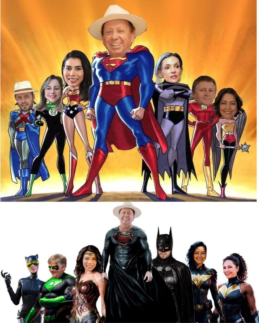 As imagens que circulam pelos grupos de mensagens em Sinop, associando figuras da administração municipal a personagens de super-heróis, carregam um toque de humor e simbolismo, destacando as principais lideranças da cidade e seus papéis no desenvolvimento local. Com criatividade, as fotos representam a gestão como uma verdadeira “Liga da Justiça”, onde cada personagem encarna os esforços e resultados obtidos nos últimos anos.