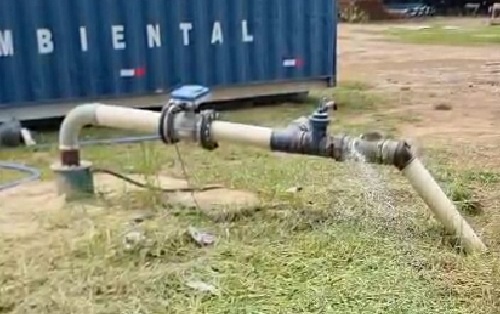 O vazamento registrado fica na flange, centímetros após o dispositivo que faz a medição da água extraída.