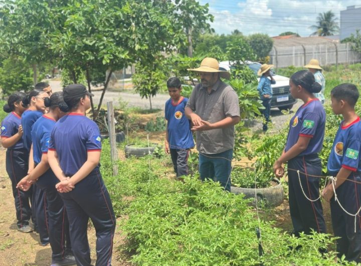 Alunos aprendem técnicas de plantio e manutenção de canteiros de hortaliças e plantas medicinais