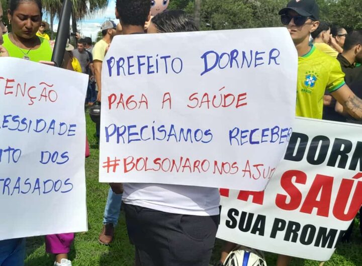 Em Sinop profissionais da saúde protestam por falta de pagamento; Durante visita de Bolsonaro