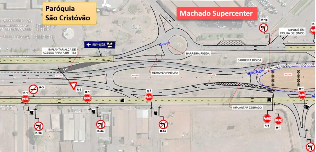 A nova mudança ocorrerá em um trecho de aproximadamente 2,5 quilômetros, entre o Gigante do Norte (km 833,700) e o km 831,200. Neste segmento, todos os veículos que percorrem a rodovia terão que acessar a avenida João Pedro Moreira. Foi construída uma alça provisória no km 833,5 da BR-163, próximo ao Gigante do Norte para possibilitar o acesso de retorno ao eixo principal da BR-163.