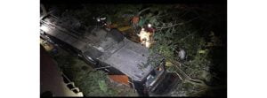 Segundo o Corpo de Bombeiros, quatro corpos estão embaixo do veículo.